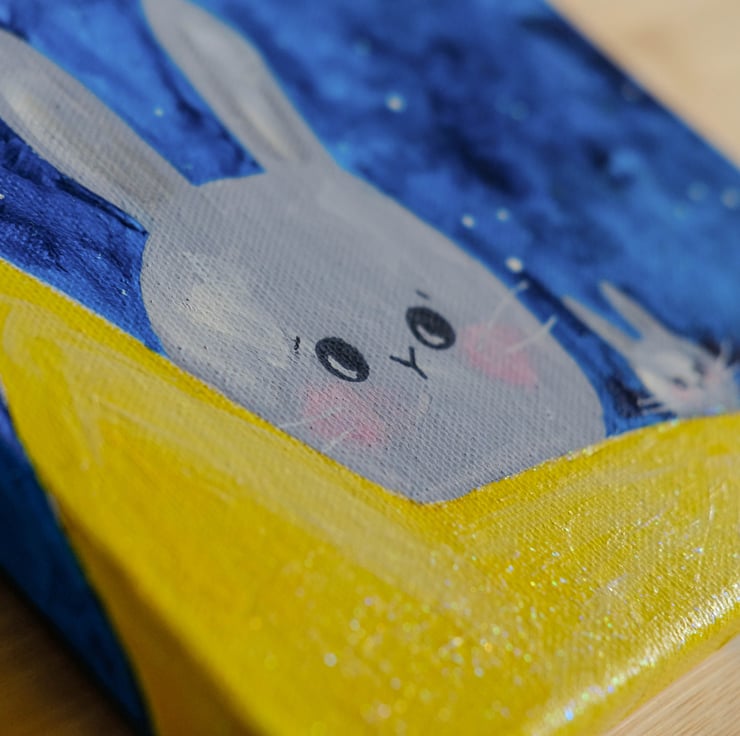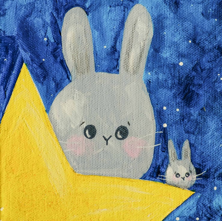 I painted these stardust bunnies to make people smile and I hope that they bring a little light into a world that can be very dark at times.