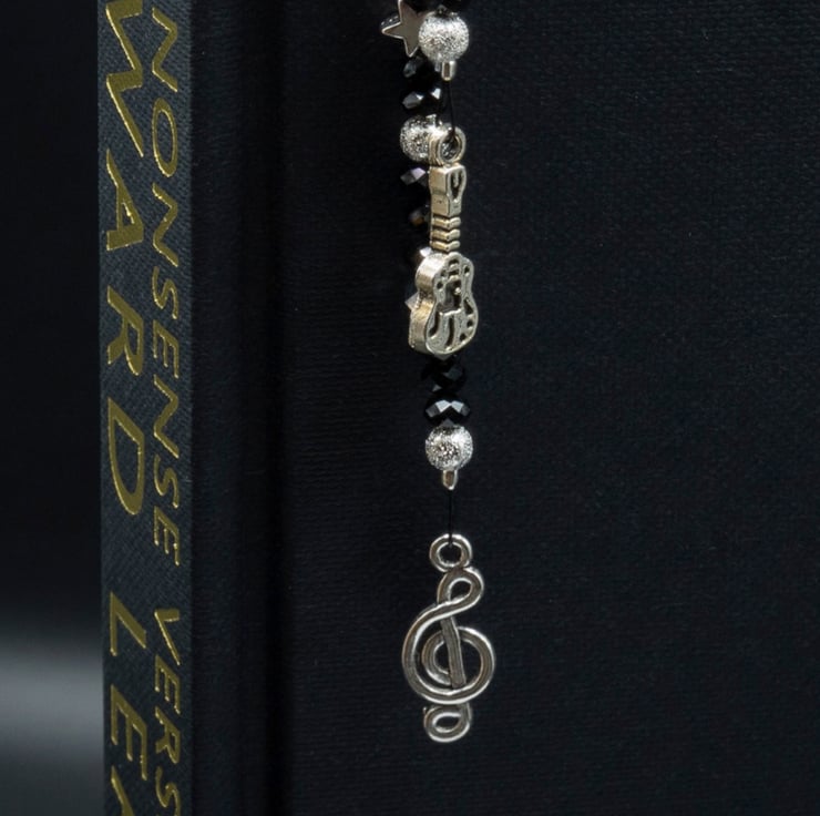 The musical bookmark measures just under 5 inches / 12.5cms long, the beads vary from 3 - 5mm.