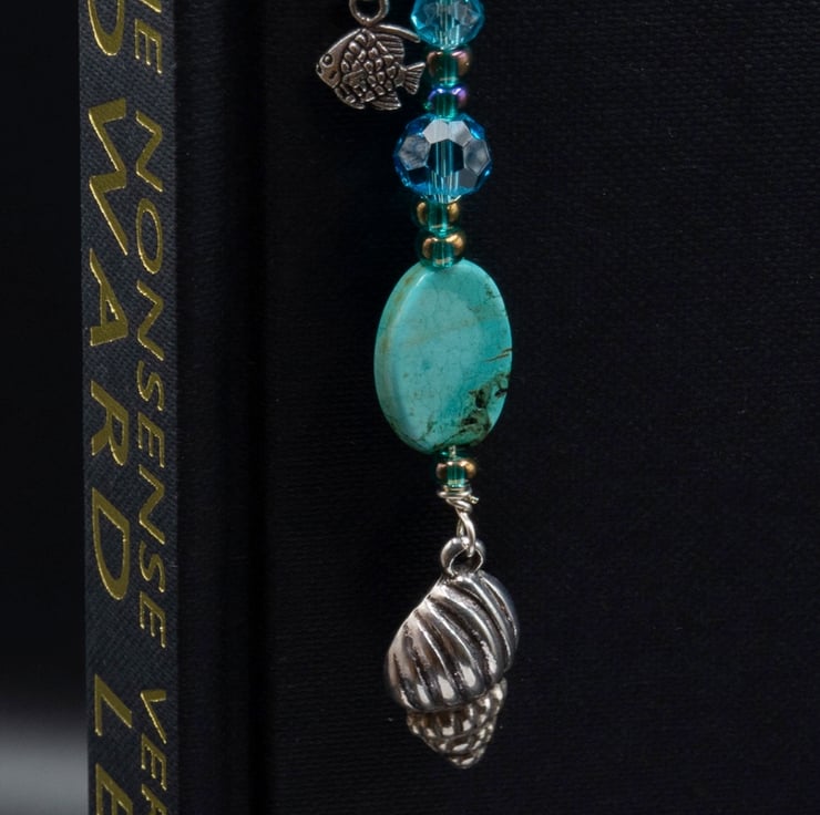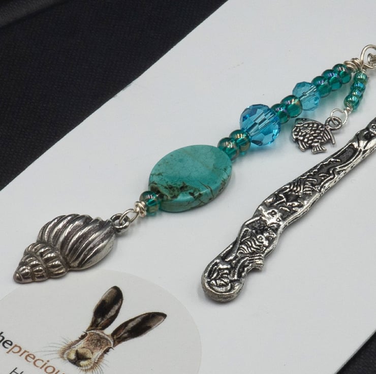 The dolphin bookmark measures 4 inches / 10cms long, the beads vary from 3 - 15mm.