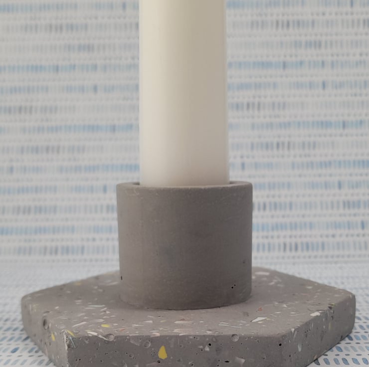 This unique candle stick holder is made from Jesmonite which gives a urban and concrete feel to each piece I create.