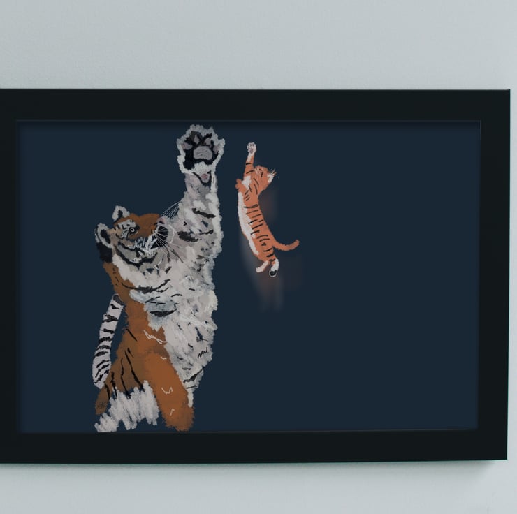 Digitally hand doodled and then printed, the 'High five the tiger' with in or the kitten print is great for his office, the kids room, a gift for those starting out, or a reminder to a loved one that they are stronger than they think.