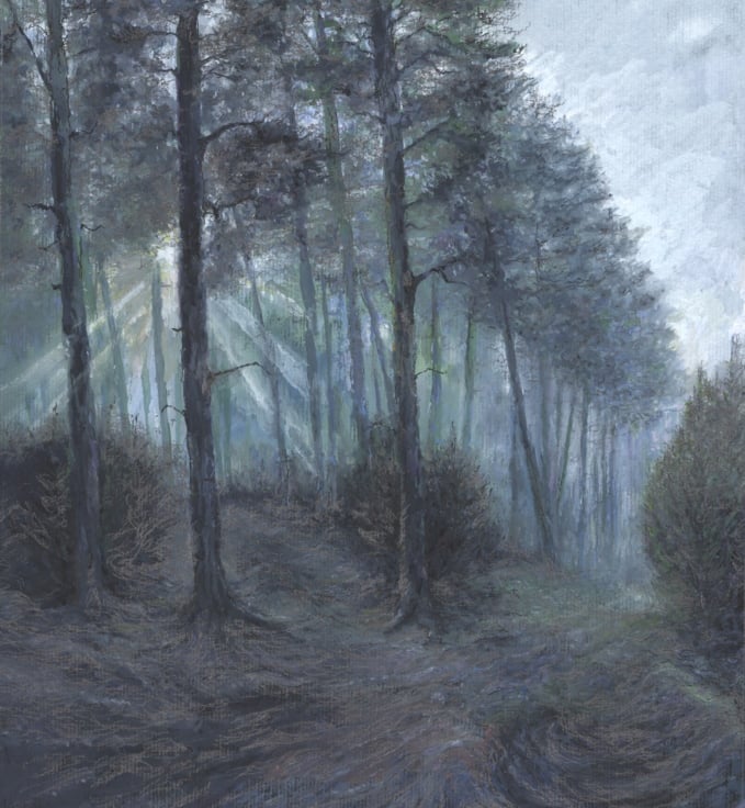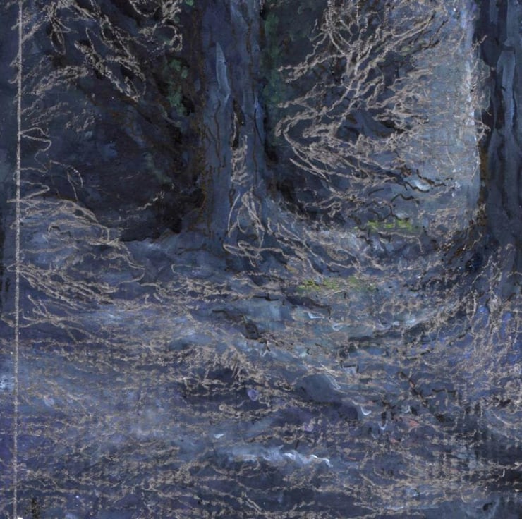 It is mildly stretched and attached to the backing board with archival gummed tape