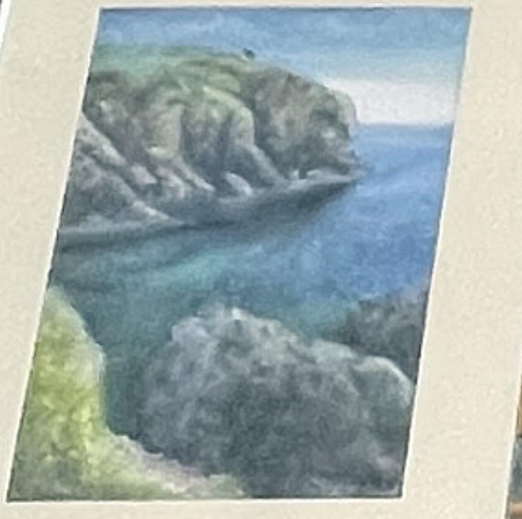 the painting comes with an ivory mount and a grey card backing board