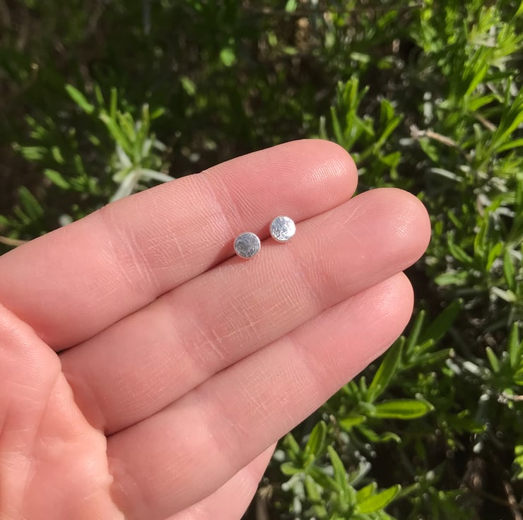 The tiny 4mm disc studs are dainty enough to wear all day or for those with multiple piercings. I also make larger versions, so you could layer them up the ear for a different look.