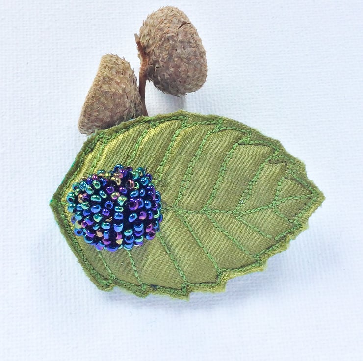Textile embroidered leaf brooch.