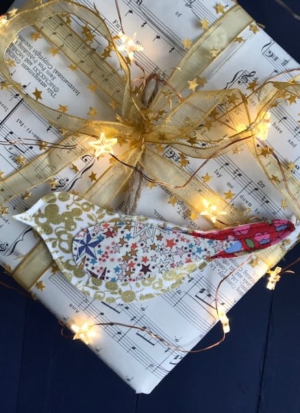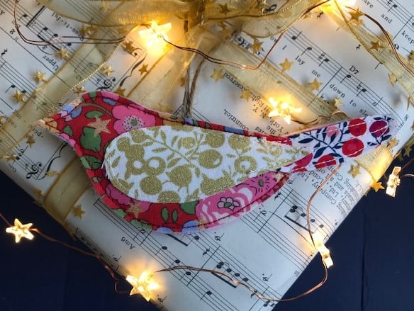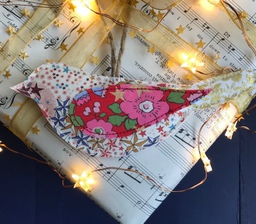 I love finding ways of repurposing leftover snippets of fabric, which would otherwise probably be thrown away. These birds are a perfect example of using scraps of material to create decorative new pieces, and these Christmas versions which would look beautiful decorating a tree or adorning a special gift.