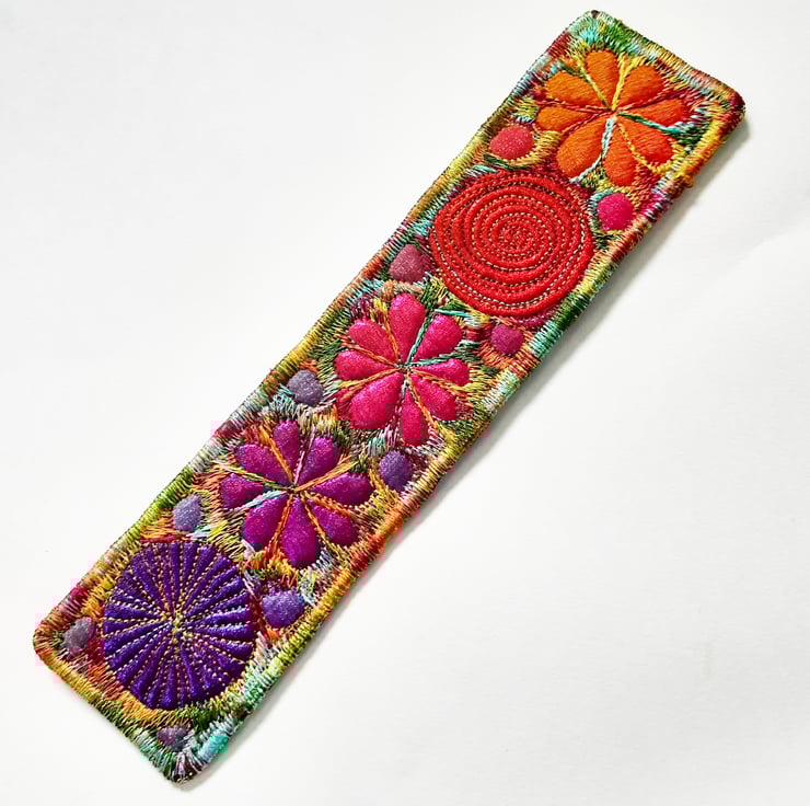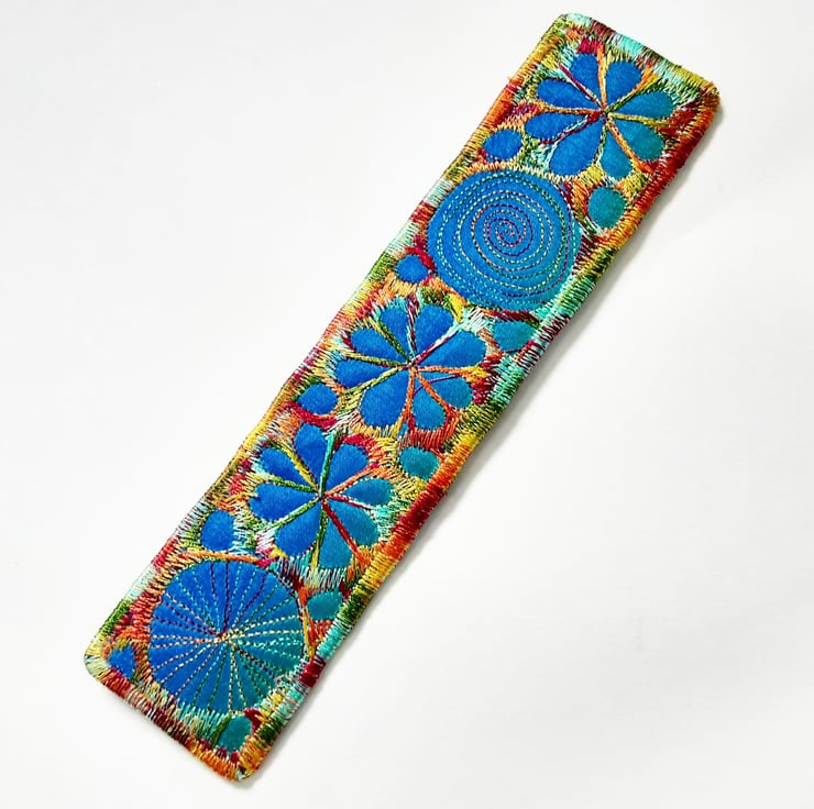 Made from layers of fabric including hand dyed Egyptian cotton and silk fabrics using the free machine embroidery style of sewing