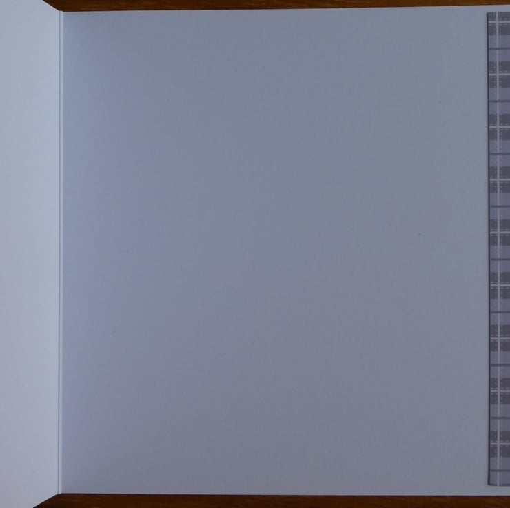 Inside the card is a strip of the same grey and white tartan card which can be seen when the card is standing on display.