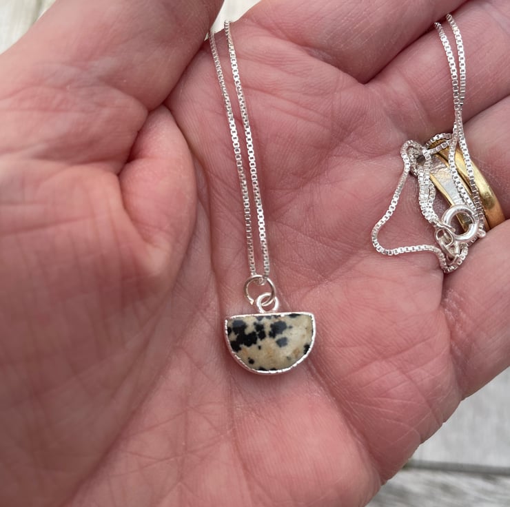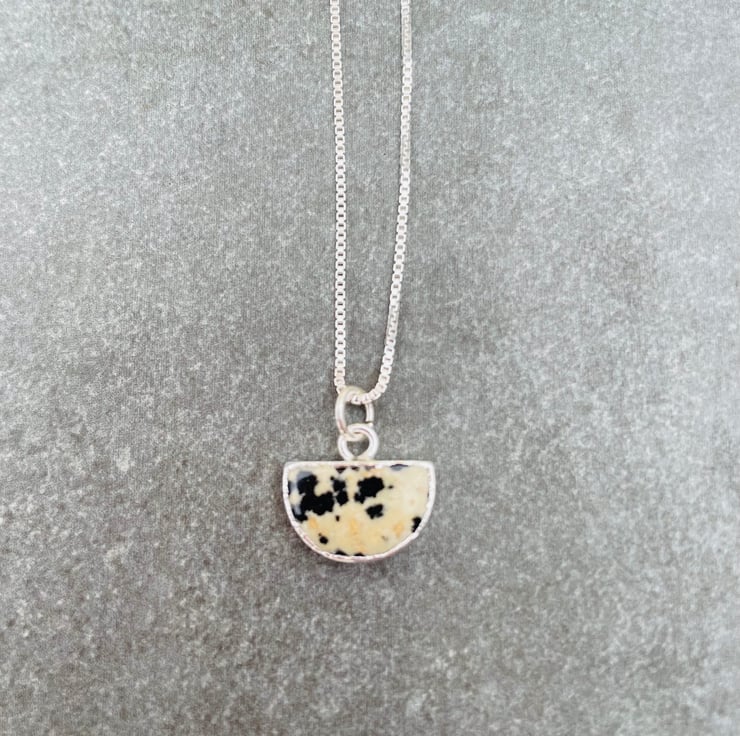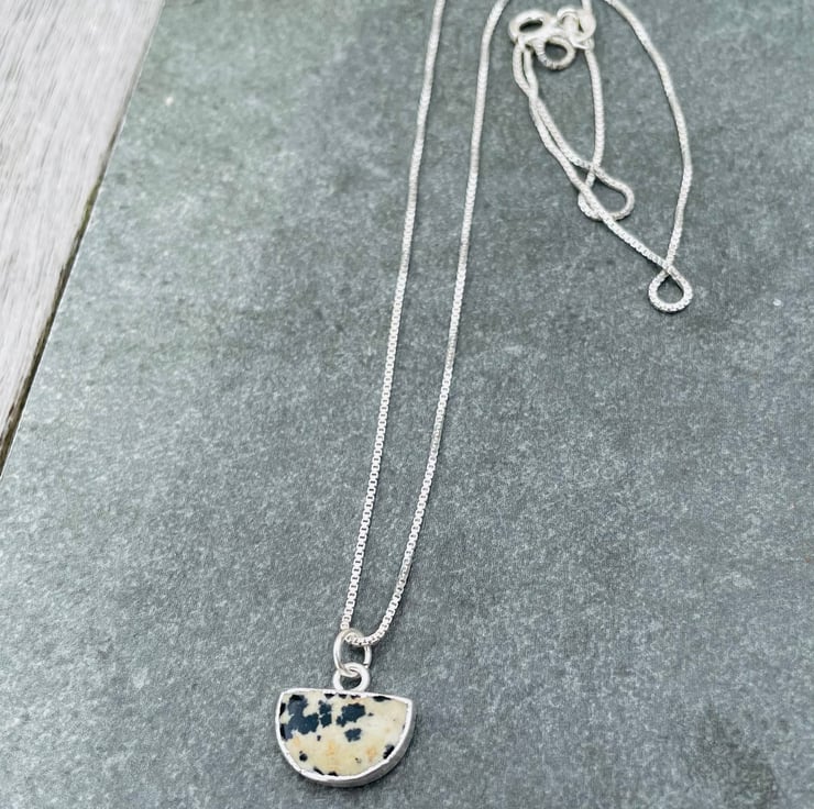 12x18mm Dalmatian Jasper pendant on 18 inch Sterling Silver box chain.