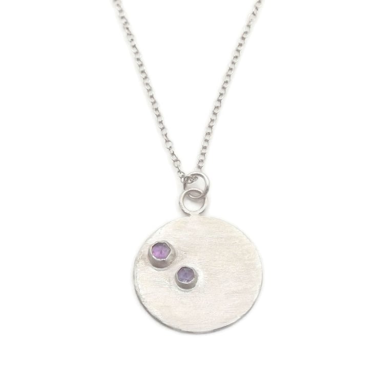 Sterling Silver Handmade Disc Pendant with Rose Cut Amethyst & Iolite Gemstones
