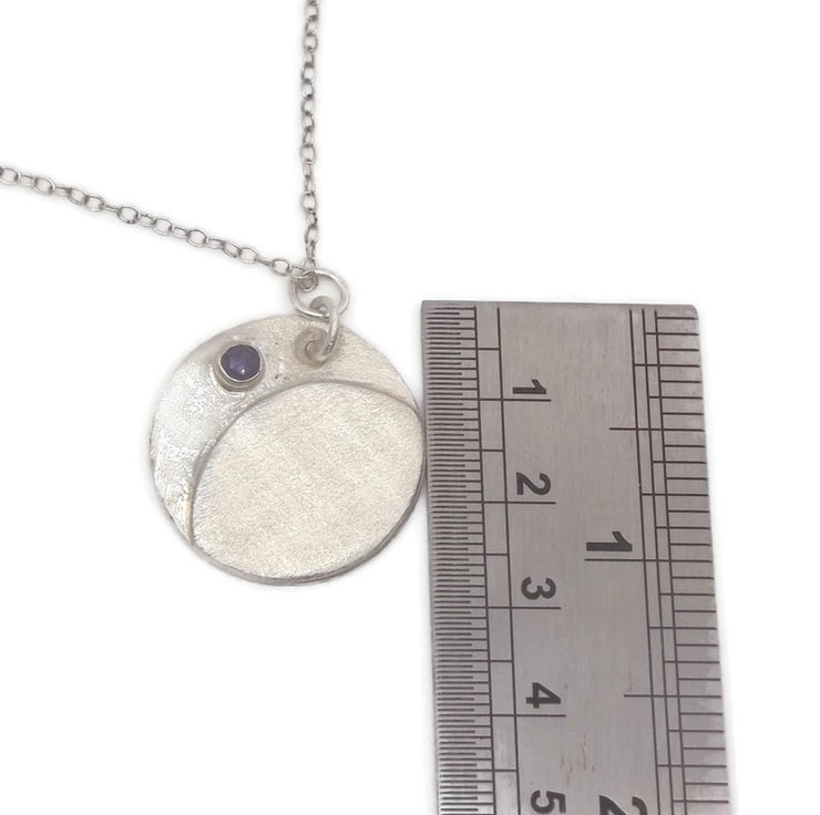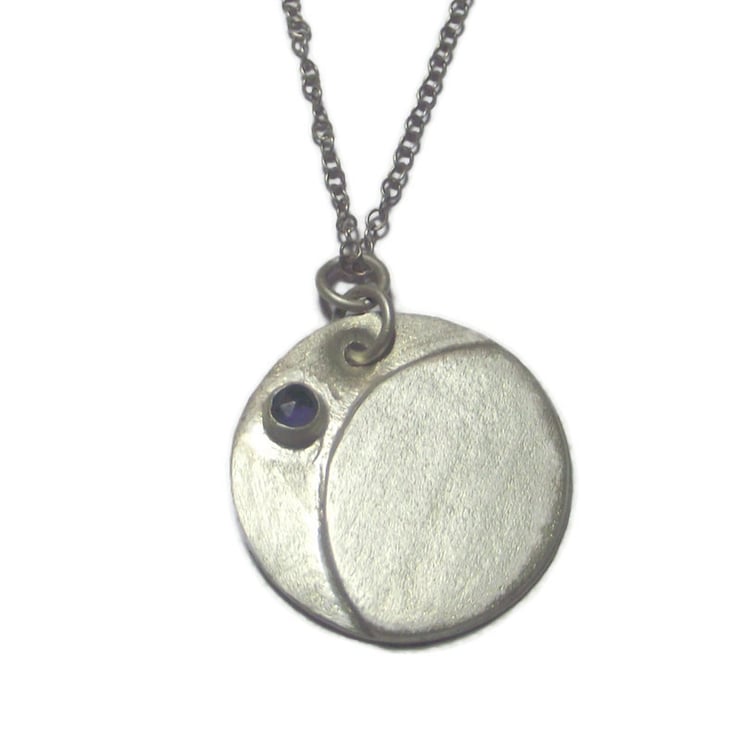 Handmade Sterling Silver Disc Pendant with Iolite, Elegant Jewellery Gift
