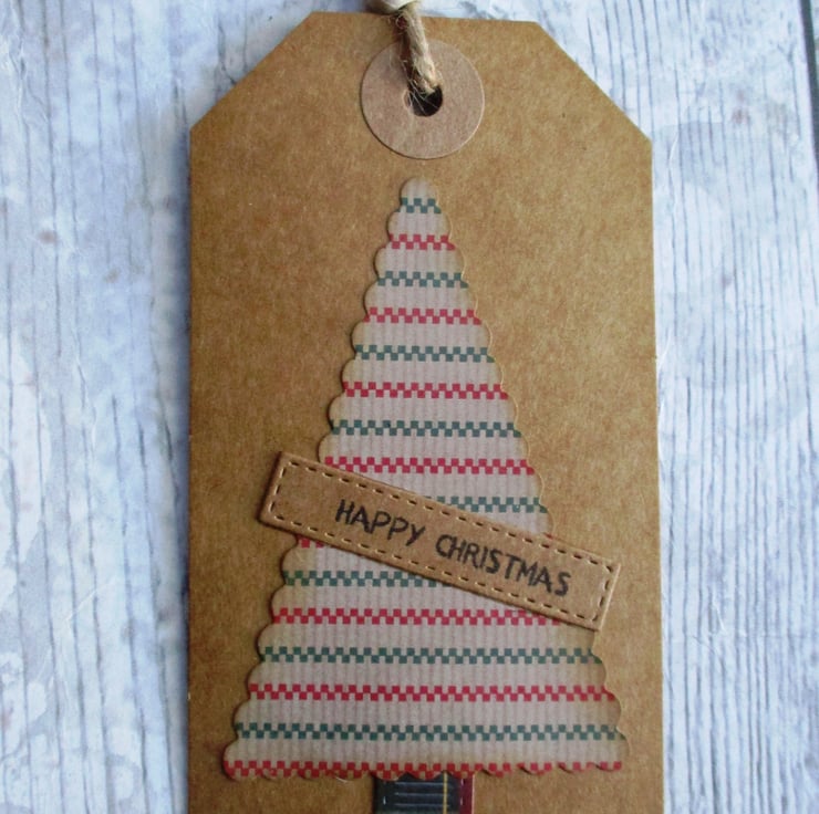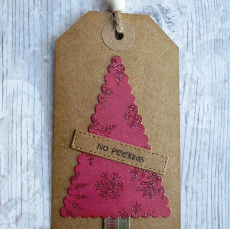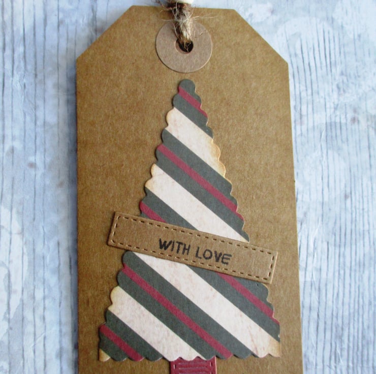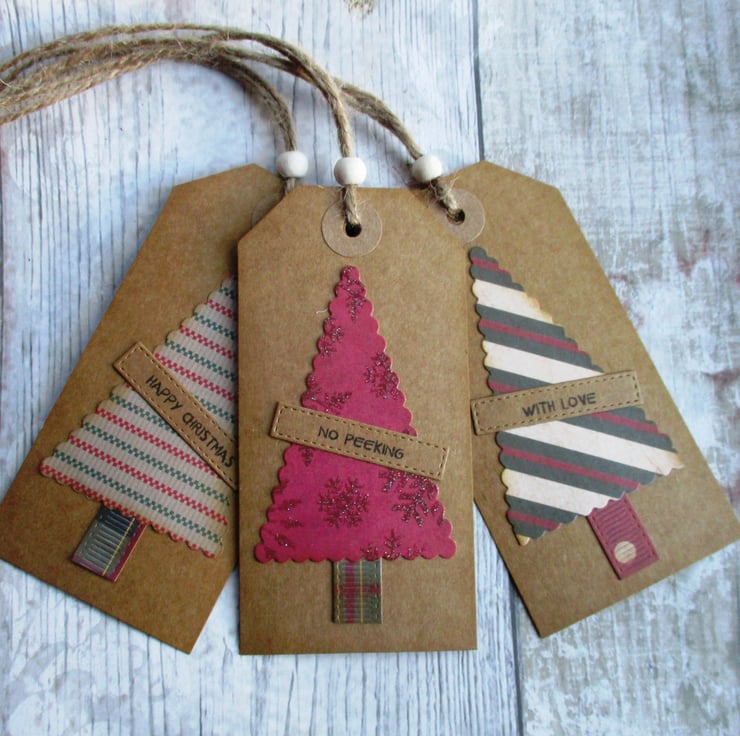 Christmas gift tags, handmade with quality card, layered and ink aged around the edges and threaded with twine and finished with a bead.