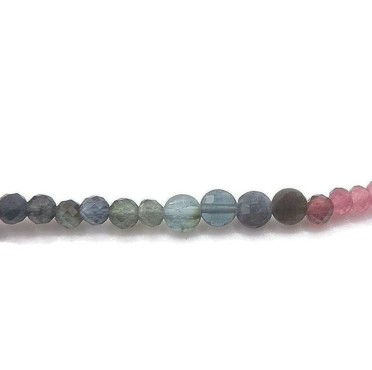 The beads are a combination of faceted 3-4 mm coin and button beads in a rainbow of colour