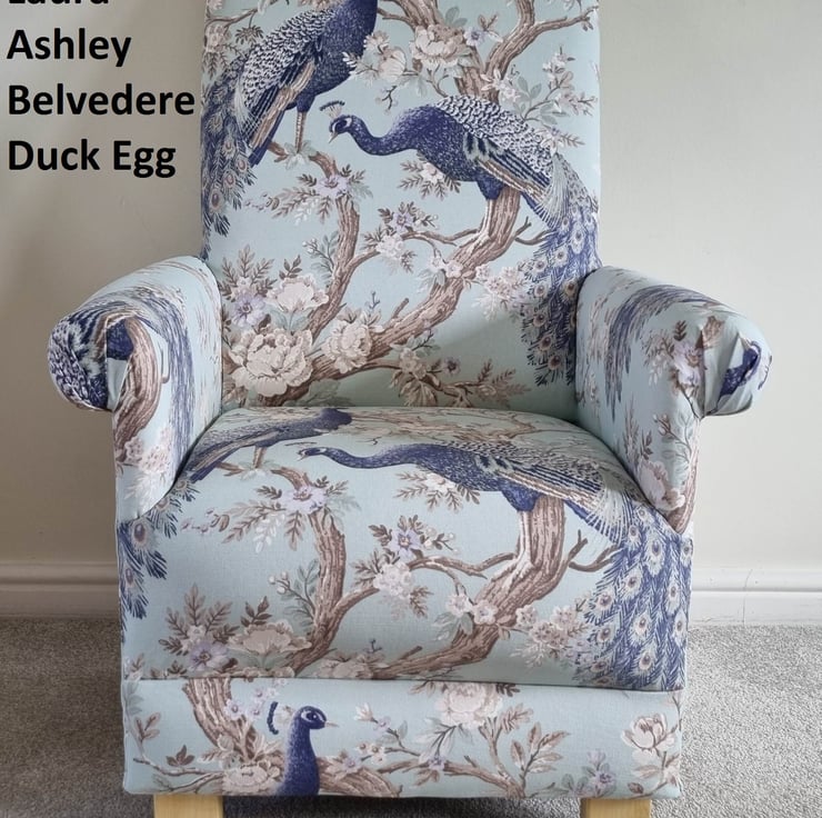 This is a high quality, handcrafted Adult chair, which has been made by myself, a professional upholsterer with over 32 years experience, using Laura Ashley Belvedere Duck Egg fabric.