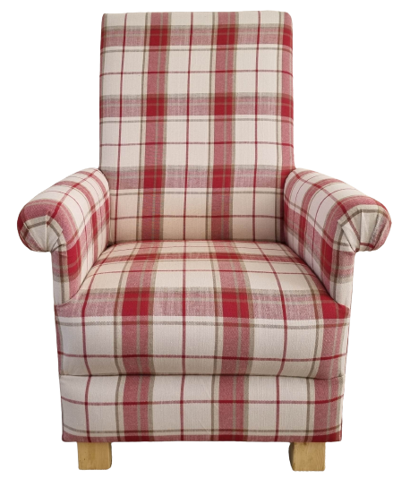 This is a high quality, handcrafted Adult chair, which has been made by myself, a professional upholsterer with over 32 years experience, using Laura Ashley Highland Check Cranberry Red fabric.