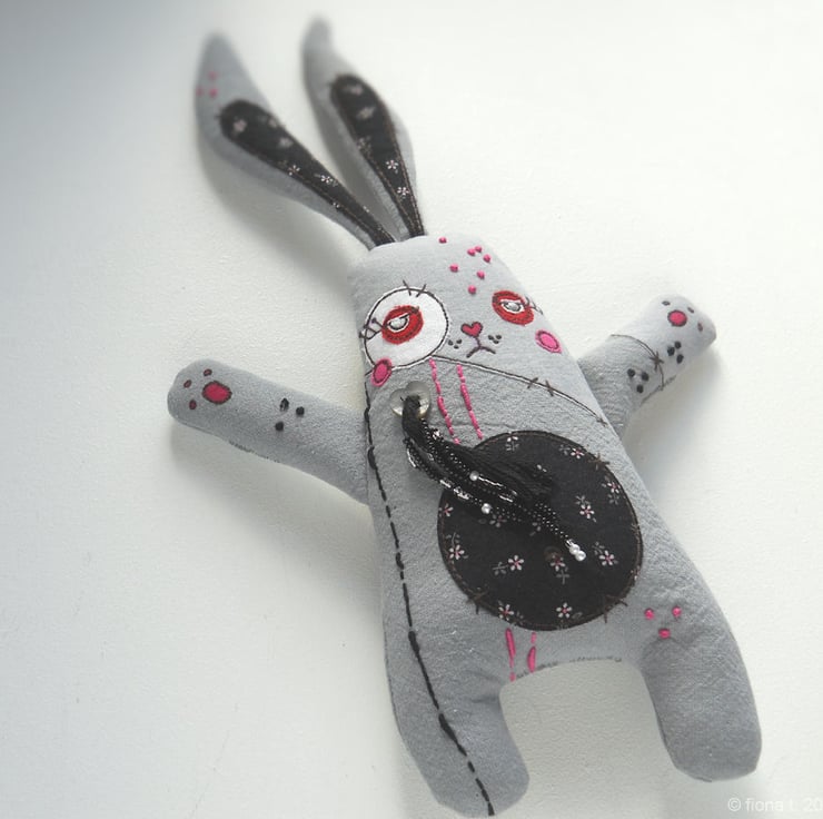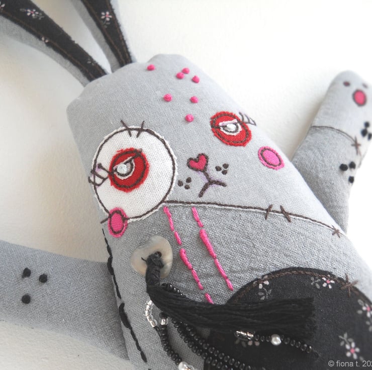 this rabbit has been made entirely on a domestic sewing machine – there is no computerised wizardry here - everything is cut, stitched & drawn freehand by me.