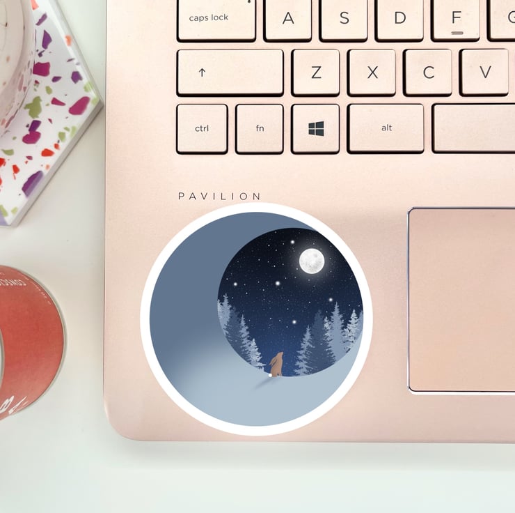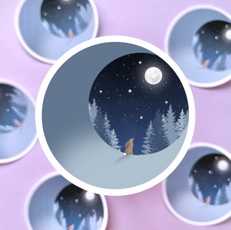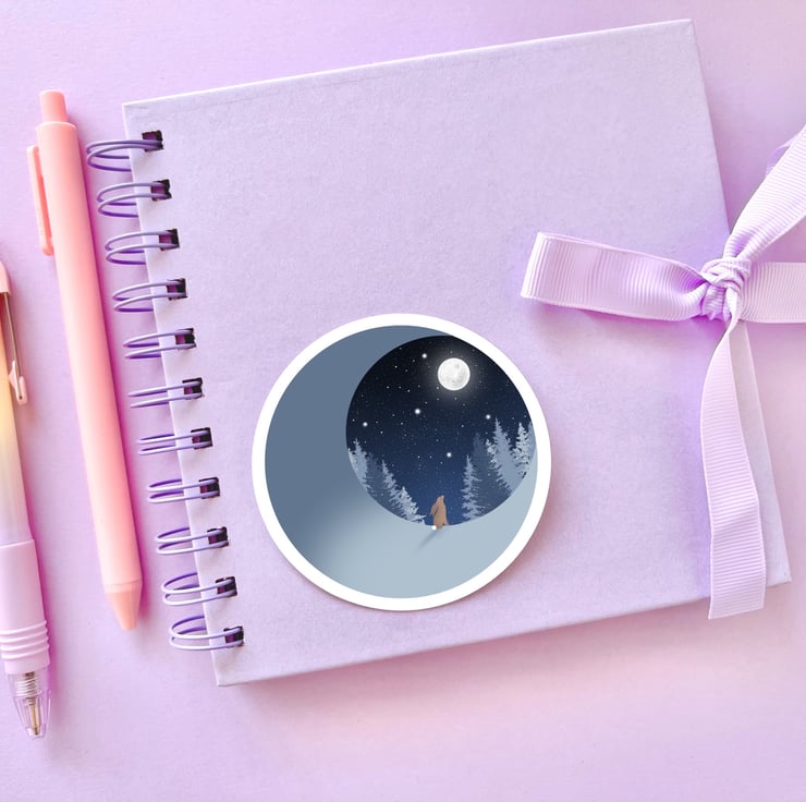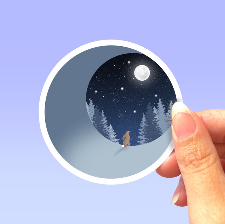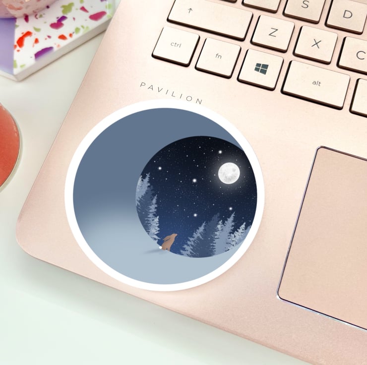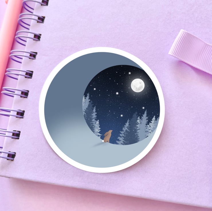 This lovely moon gazing hare die cut sticker has been hand drawn on the iPad using Procreate. The sticker has then been printed on to 100gsm glossy white photo sticker paper and it is splash proof. The sticker can be used on laptops and in your planners or wherever you would like to place it.