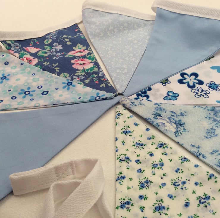 Blue Floral Bunting, Wedding, Party - Vintage & New Pastel blue flags.