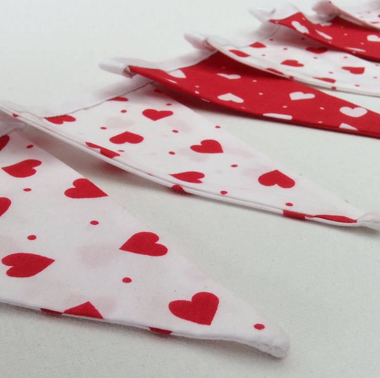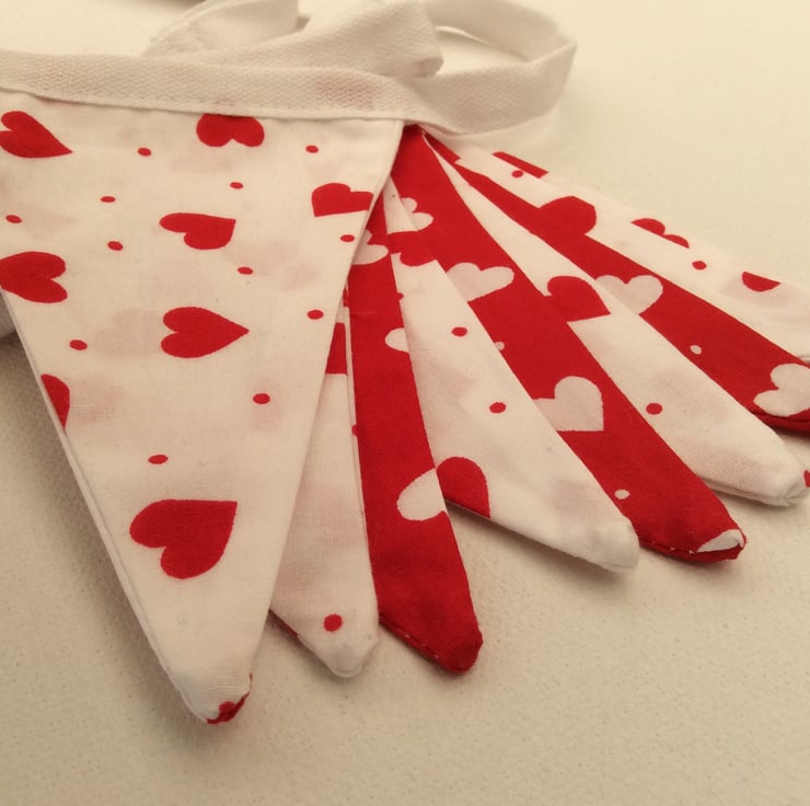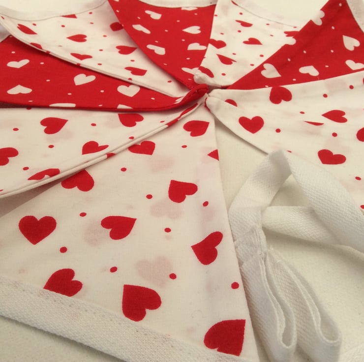 Add a touch of romance with this red and white heart Fabric Bunting