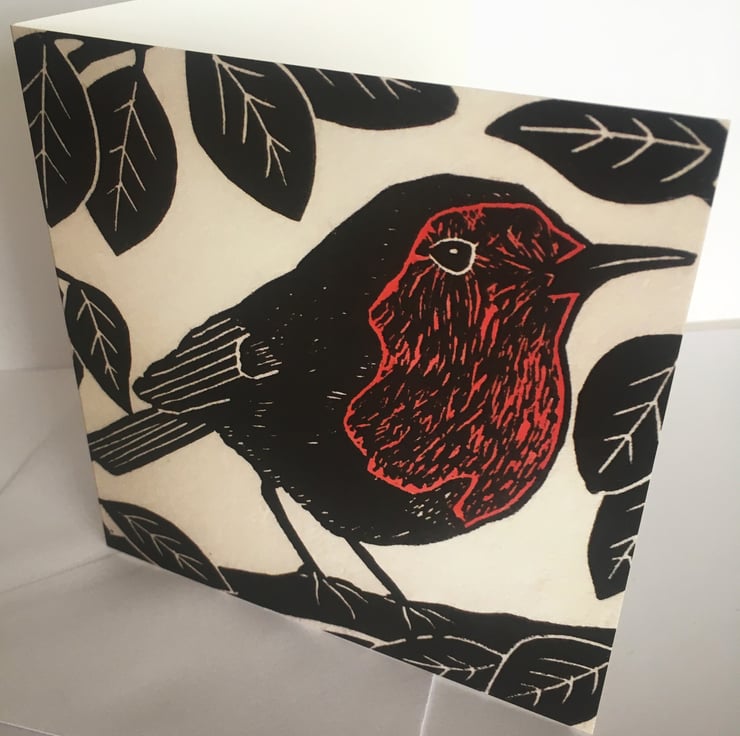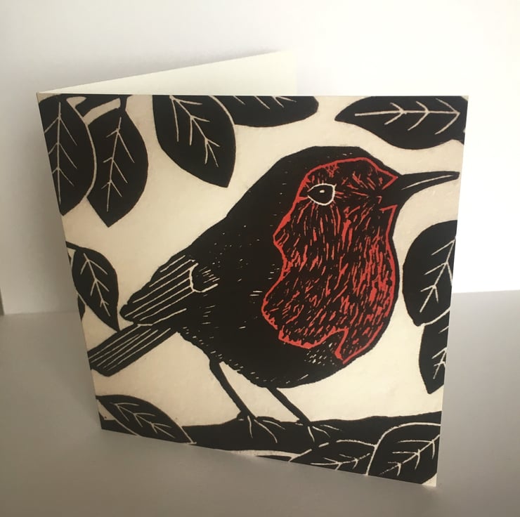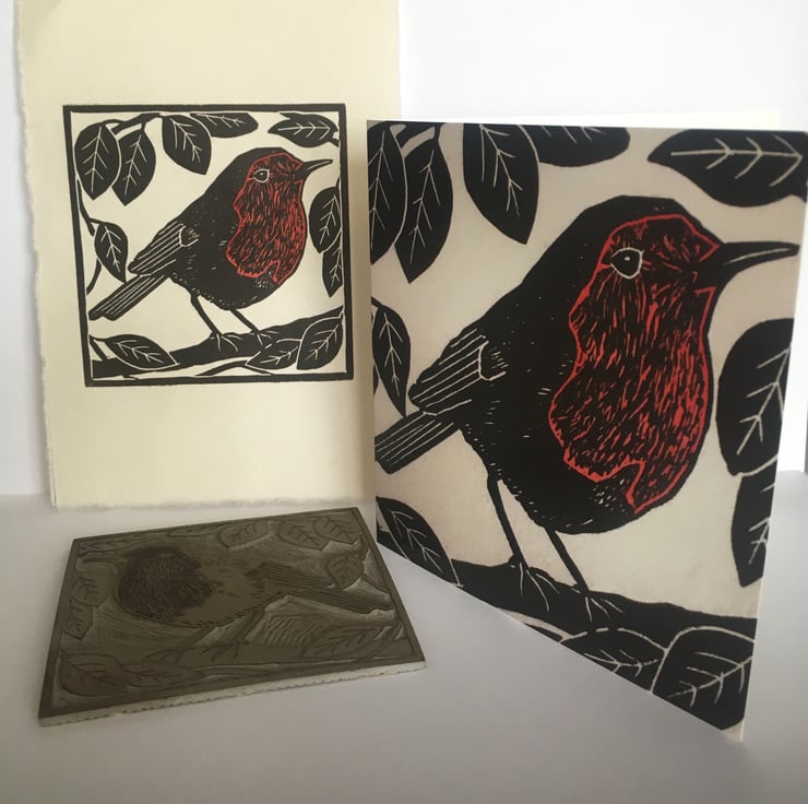 "Robin" is one of my newest linocut prints and I am so pleased to have him here as a greetings card. The Card is blank inside but would make a lovely Christmas Card for anyone who loves printmaking.