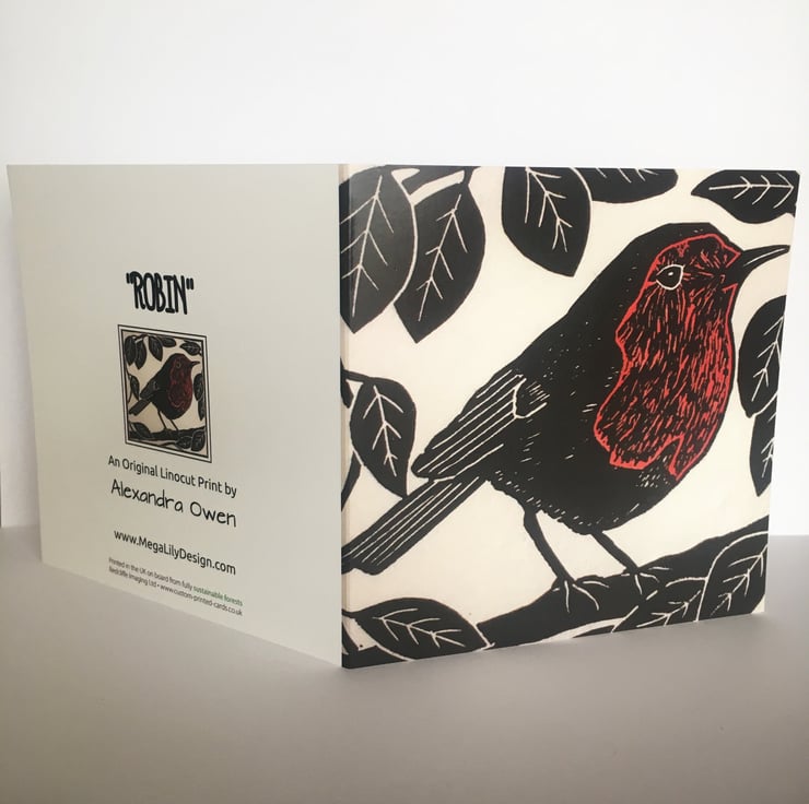 The cards are 5" square, blank inside for your own special message and printed on 300gsm white card with a mid gloss finish. The cards come with a white envelope and in a recycleable clear bag.