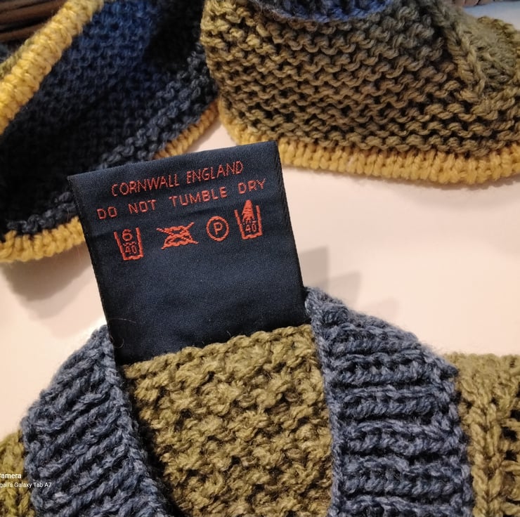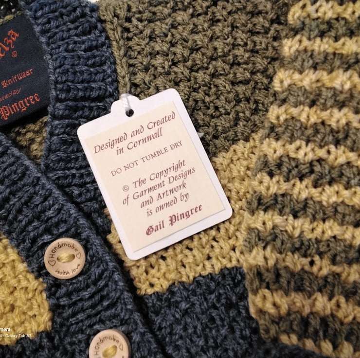 Baby knitwear is designed and hand crafted by Demelza Designs in Cornwall meeting UK baby safety standards, Only branded premuim acylic, acrylic/natural fibre blends or pure natural fibre yarns are used in baby knitwear which conforms to BS984/76 standards.