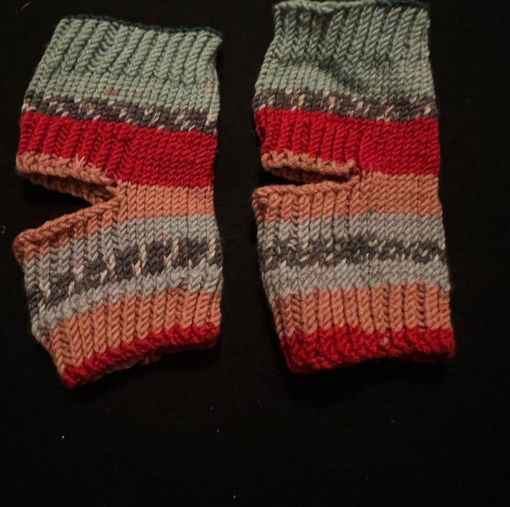 Hand knit yoga or Pilates socks made using James c bretts aqua red fairground yarn. These socks with their open toes and heels will keep your feet warm in exercise classes.