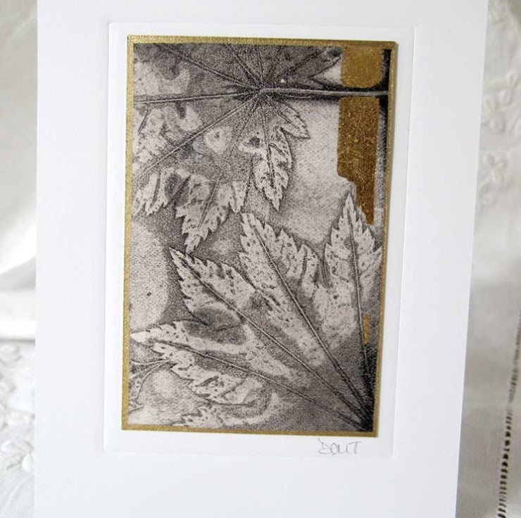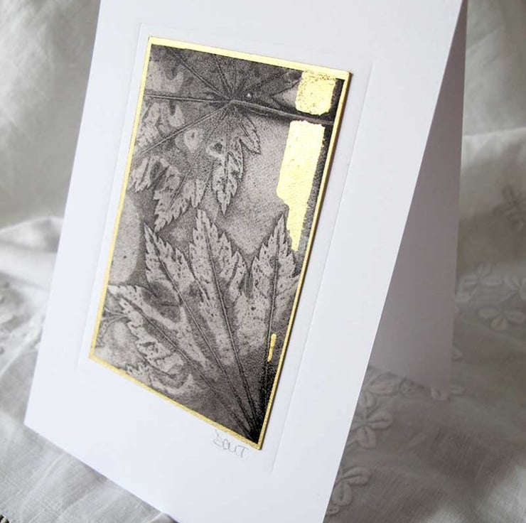 MONOPRINT AND GOLD LEAF BOTANICAL CARD