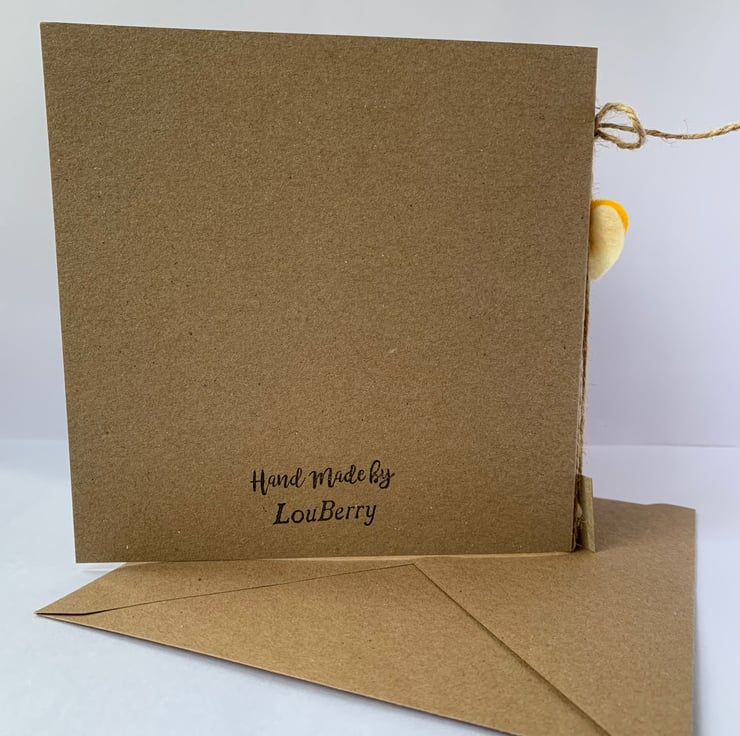 The card measures 6x6 inches and is supplied with a matching envelope. For delivery the card will be wrapped in tissue paper and posted in a boarded envelope for protection.