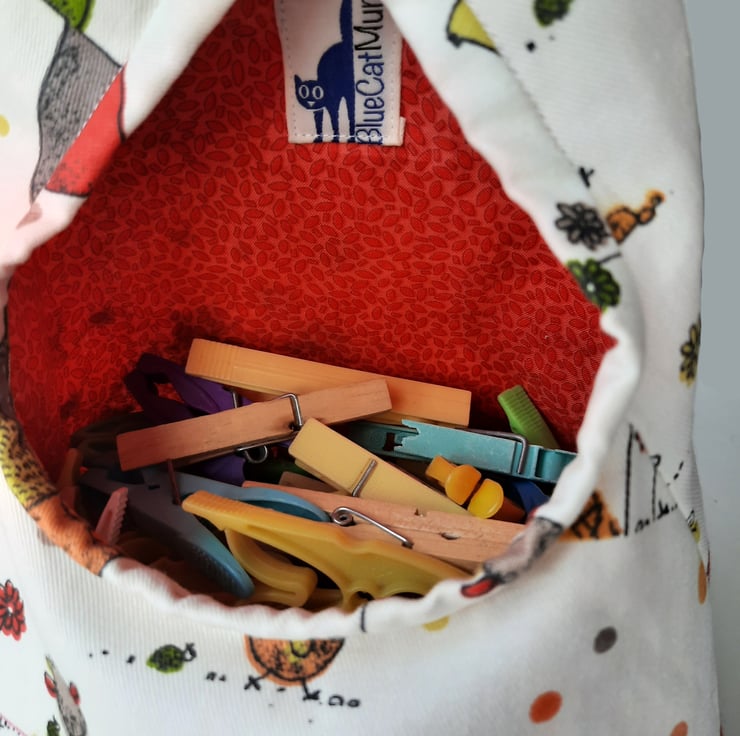I was fed up of my pegs spilling out once my peg bag was back in my cupboard. This solves the problem by keeping them all contained. Don't just use them for pegs though - also great for craft materials - a crochet bag for example!