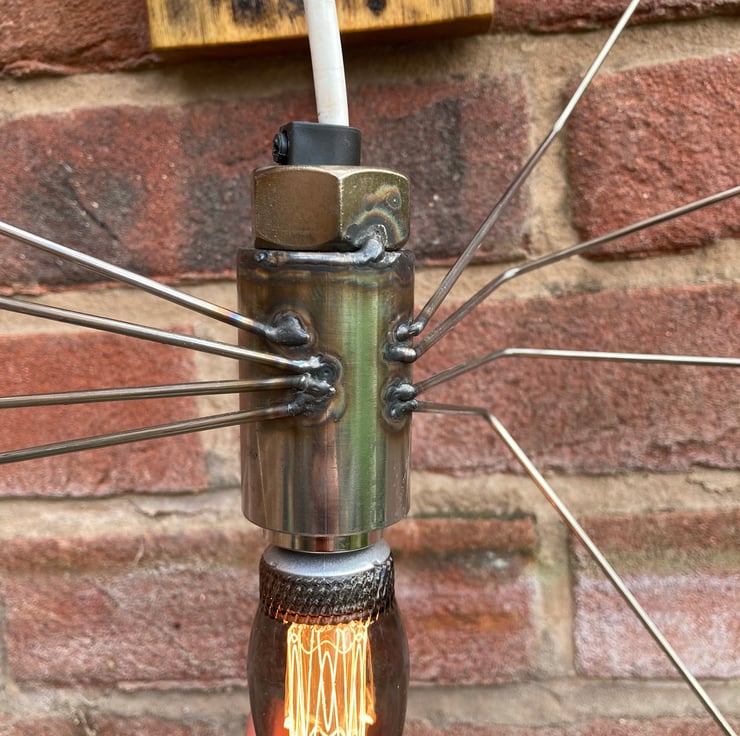Upcycled/repurposed steampunk and industrial themed lighting. All with economical mains voltage LED lamps to help with your bill and save the planet!