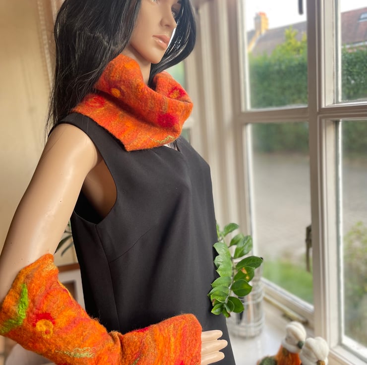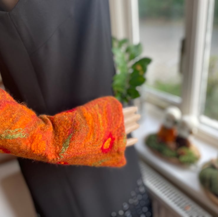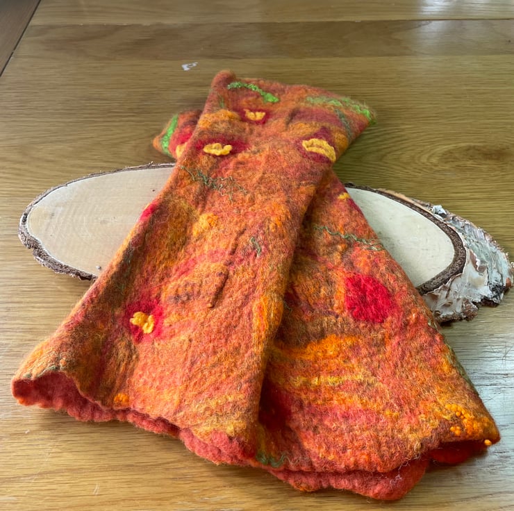 This beautiful fingerless gloves, Felted wool winter gloves with open fingers was made by me, by hand without the use of patterns, using the best soft organic merino wool in the wet felting technique.