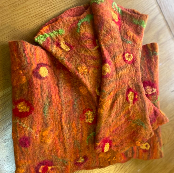 This beautiful 2 SET of felted from wool neck warmer, hat and hand warmers was made by me, by hand without the use of patterns, using the best soft organic merino wool in the wet felting technique.