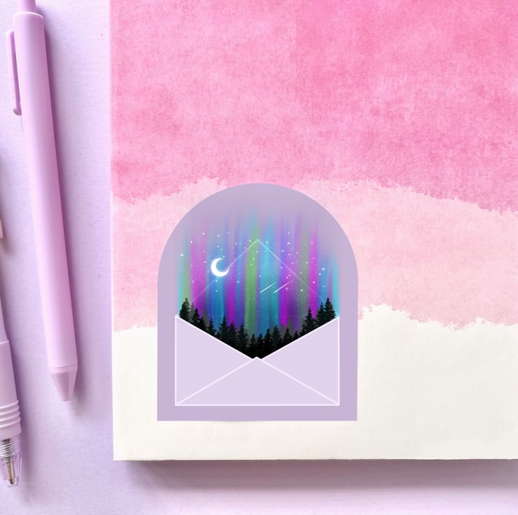 This magical northern lights die cut sticker is perfect for anybody who loves the beauty of nature.