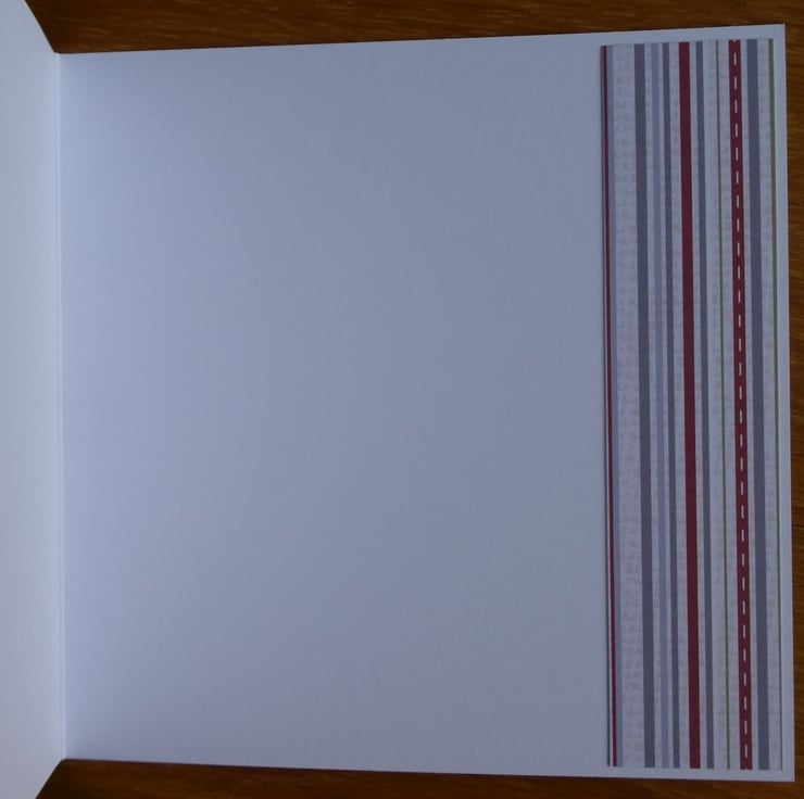 Inside is a strip of the same striped card which can be seen when the card is standing on display.