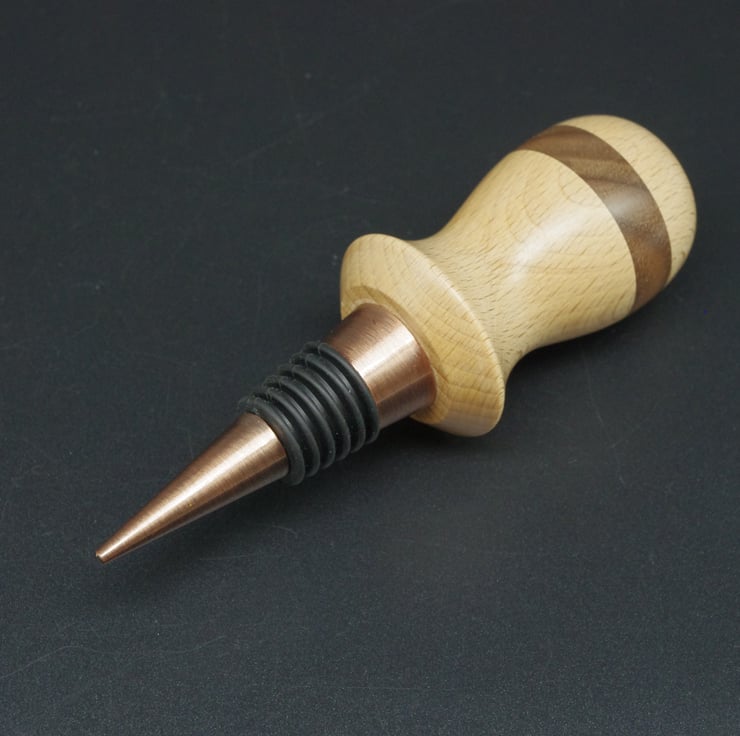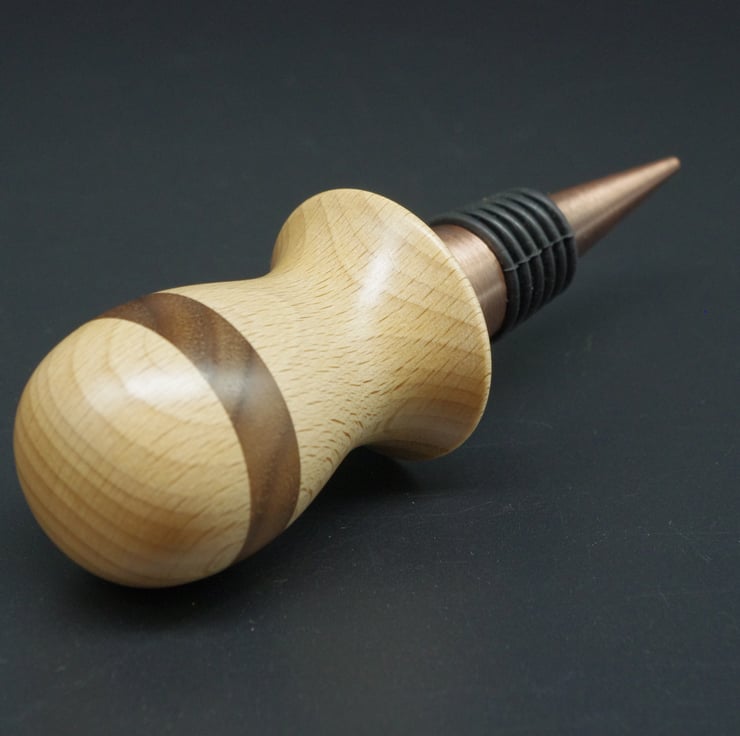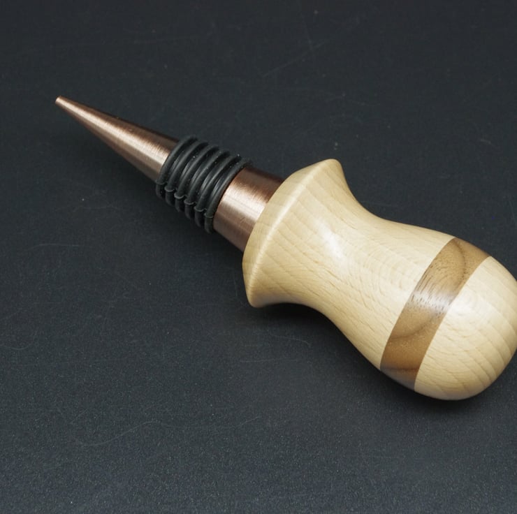 A delightful hand-turned bottle stopper made from Scottish Beech with Walnut Stripe.