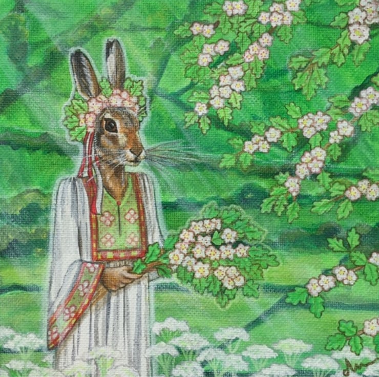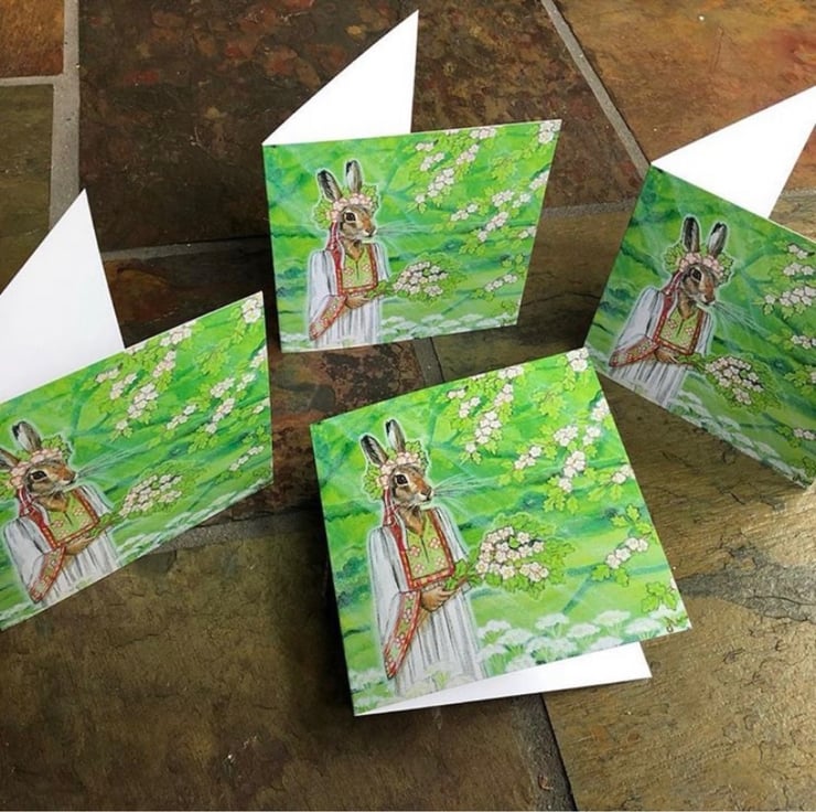 The Goddess at Beltane. Greeting card featuring original artwork taken from an acrylic painting on canvas by Amy Maythorne. This card measures 5 x 5 inches and is left blank for your own message. Supplied with envelope.