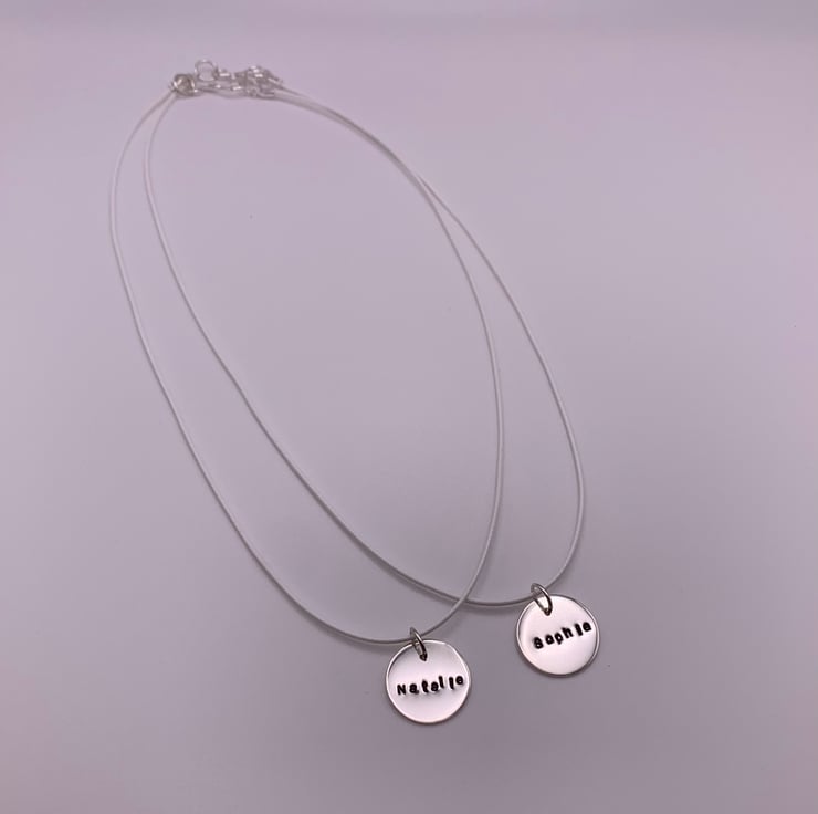 The circular pendant hangs on a 16 inch cord which you can have in your choice of colour. Choose from white, blue, pink, red, grey or black cord. The pendant diameter is approximately 16mm.