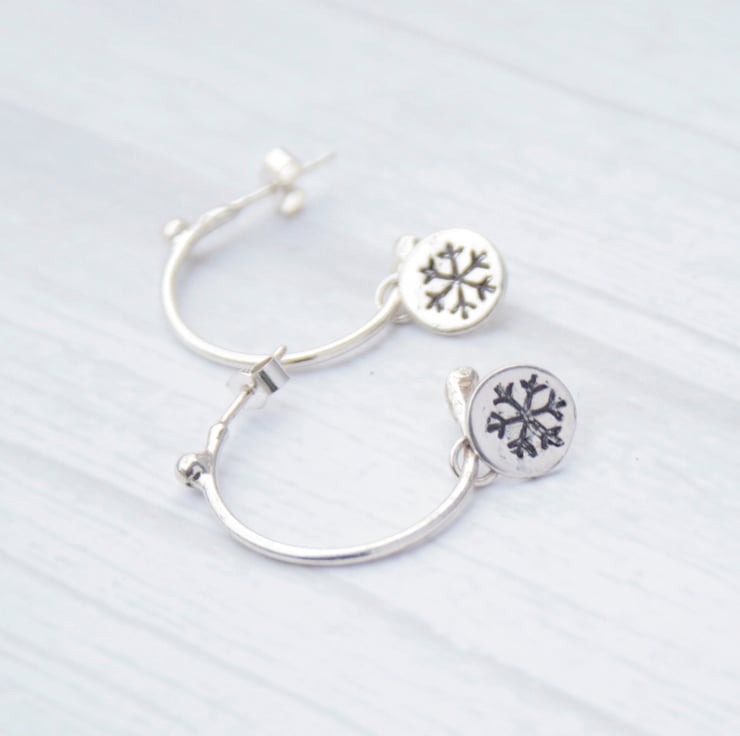It's always lovely to have a pair of earrings that are brought out for Christmas. These silver snowflake hoop earrings are a perfect piece of jewellery for wearing at Christmas but would also look great all through the winter.