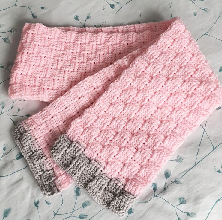 Gorgeous pink and grey winter scarf, perfect for those cold winter mornings.