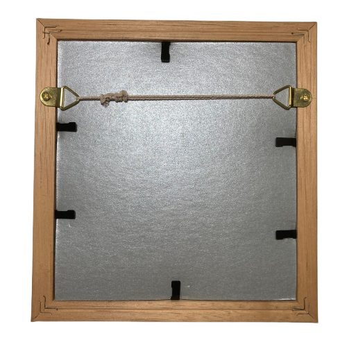 The completed picture is available framed with a white card mount - the wooden frame measures approximately 15cm x 16cm, brass fittings and a hanging string have been added to the rear of the frame.
