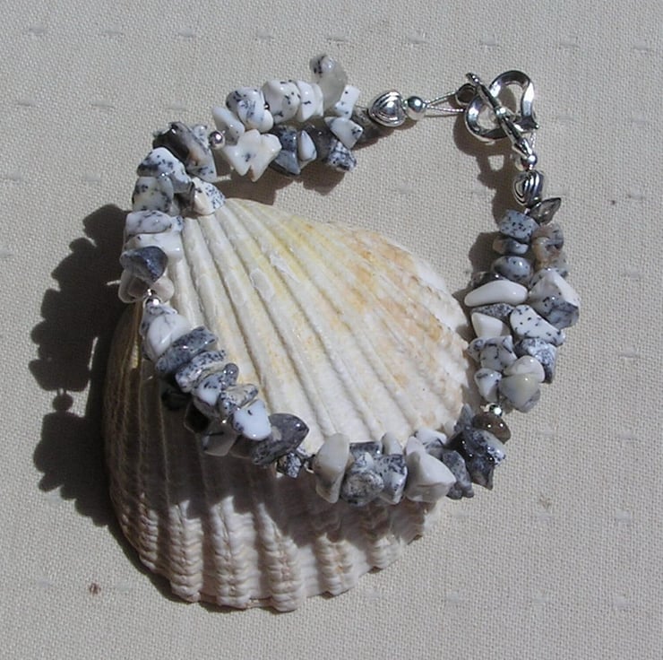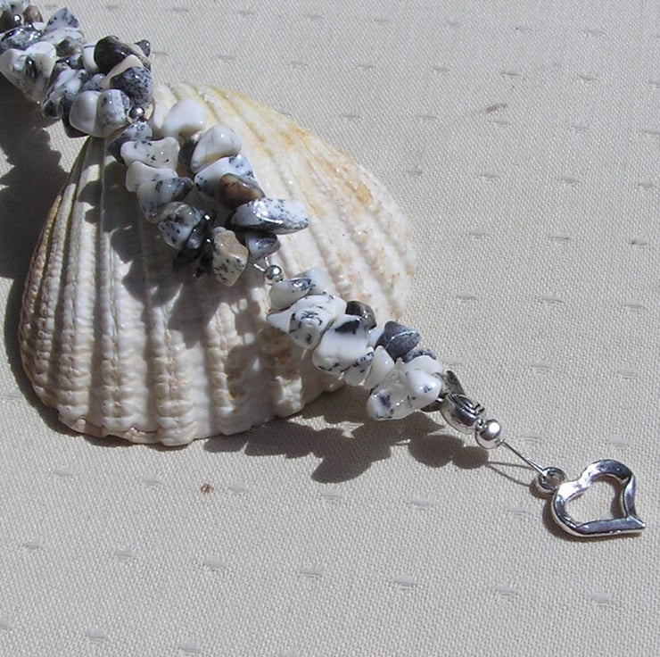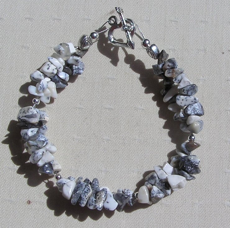 This Stunning Bracelet is made wholly from Dendritic Opal – Double stranded Gem chips separated into short sections by Silver spacer beads - A Glistening combination