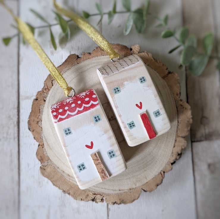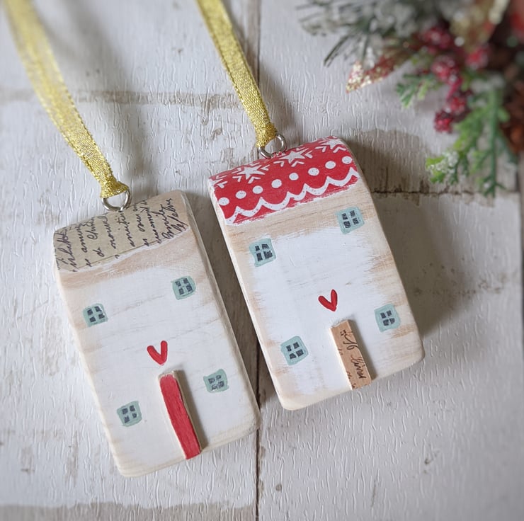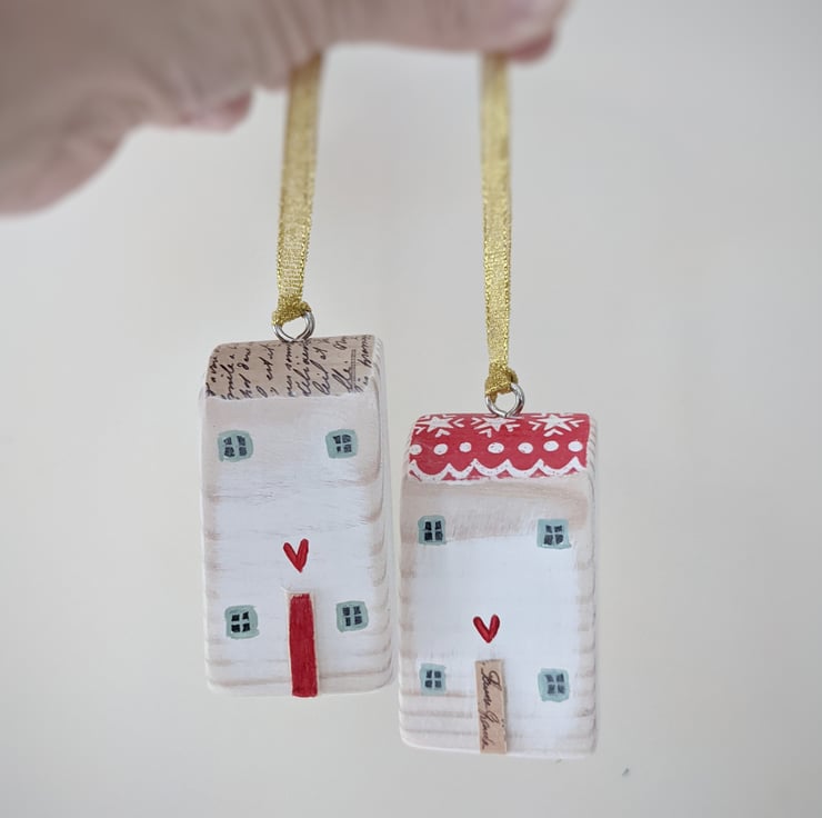 I have chosen two houses that compliment each other for this little set. Hang them together or give one as a gift!