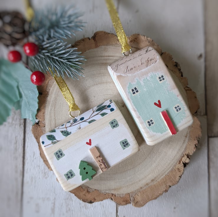Two sweet little wooden painted houses for your Christmas home.