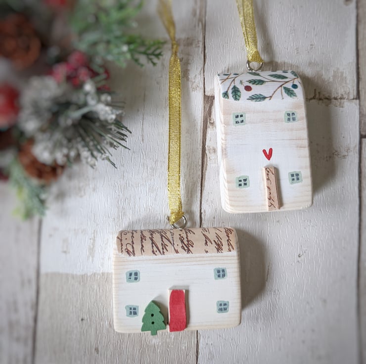 I have chosen two houses that compliment each other for this little set. Hang them together or give one as a gift!