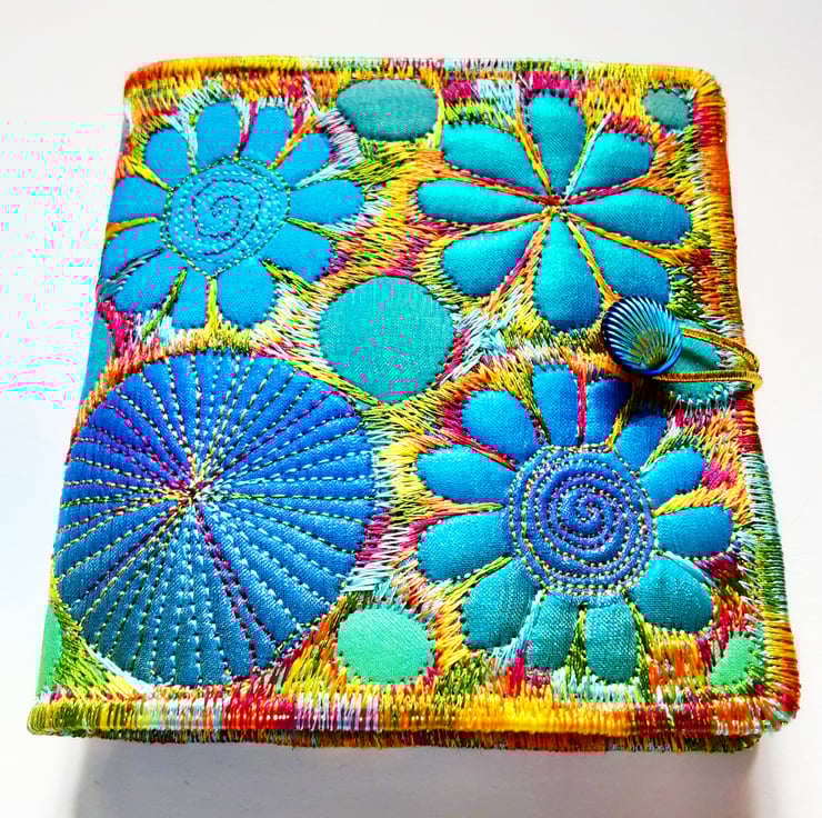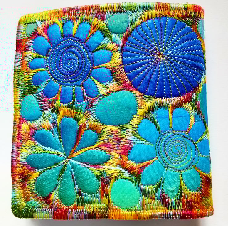 Made from layers of fabric including hand dyed Egyptian cotton and silk fabrics using the free machine embroidery style of sewing