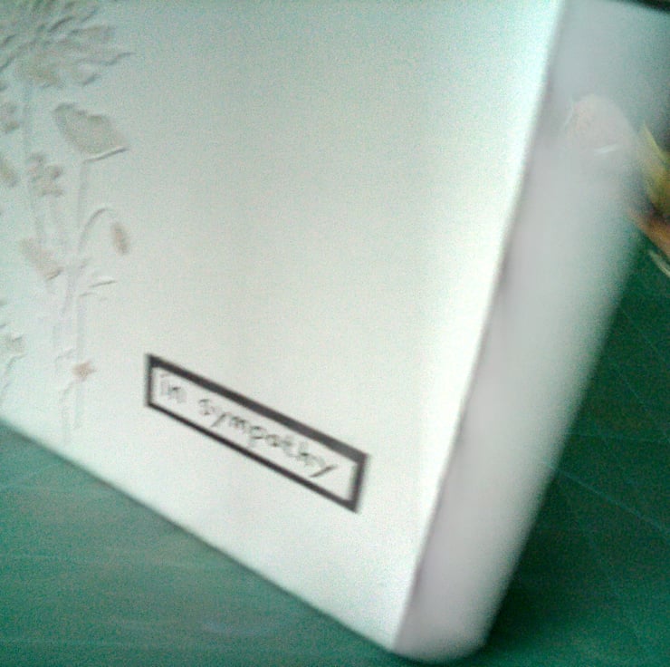 A completely handmade and uniquely designed card. Consisting of wildflowers die cut from white card and mounted onto quality pristine white card. Then onto black card and then onto white card. Hand coloured with subtle grey and silver. In sympathy tag