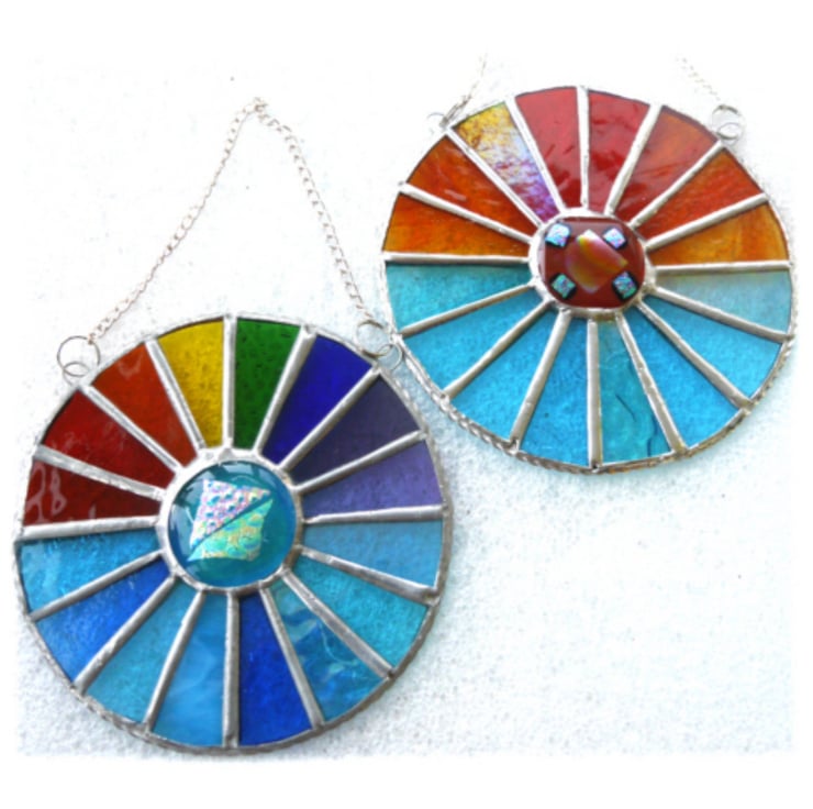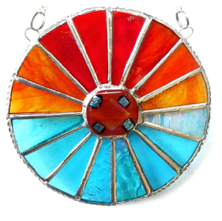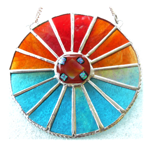 This is a stained glass suncatcher made using the Tiffany copper foil technique.