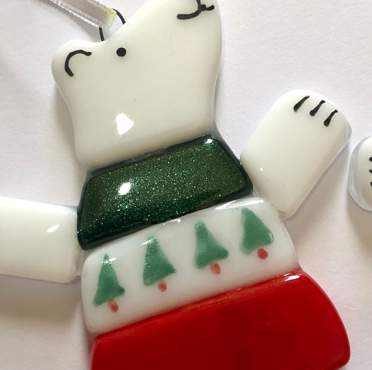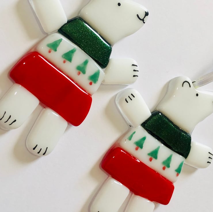 You will receive one cute hanging unique fused glass polar bear decoration .