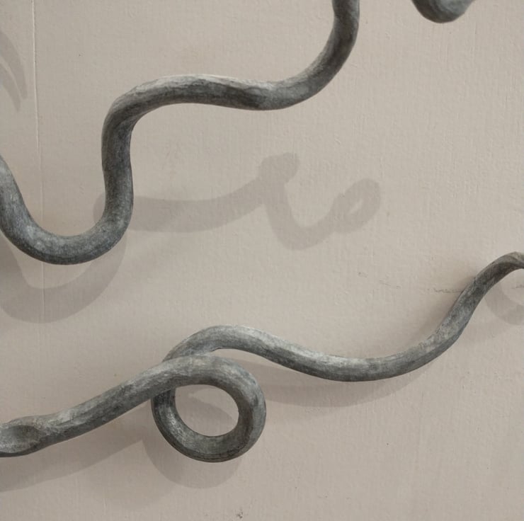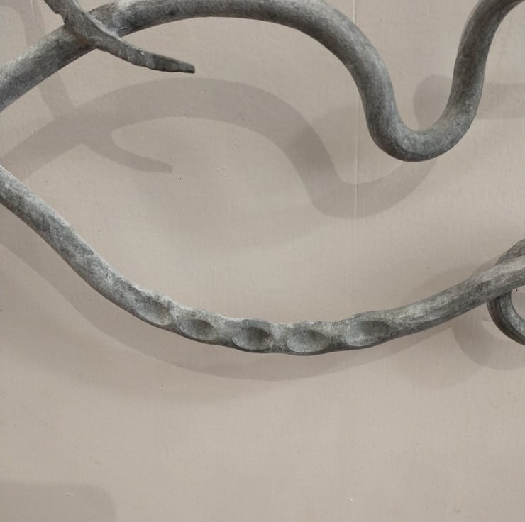 I love playing with hot metal as it is so wonderfully fluid when hot, these panels allow me to explore some of the techniques available to a blacksmith. My aim here is to give the impression of waves, weeds and fish frolicking.